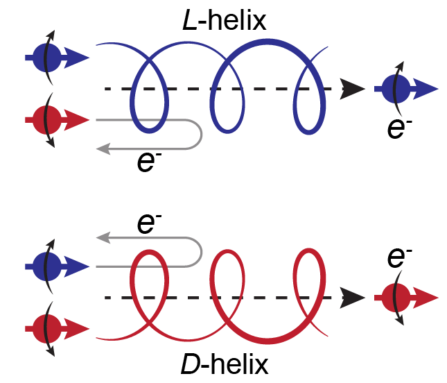 Our research investigates how spin-selective processes can be harnessed to control reactivity and recognition. We study how electron spin influences chemical phenomena such as asymmetric catalysis, polymerization, and charge transfer. We are also interested in how these spin-dependent effects might extend to the geosciences—for instance, through chirality-induced magnetization. Last but not least, we are exploring the role of spin interactions underlying molecular recognition and long-range electron transfer in biology—offering a new layer of understanding and control over life's most fundamental processes.